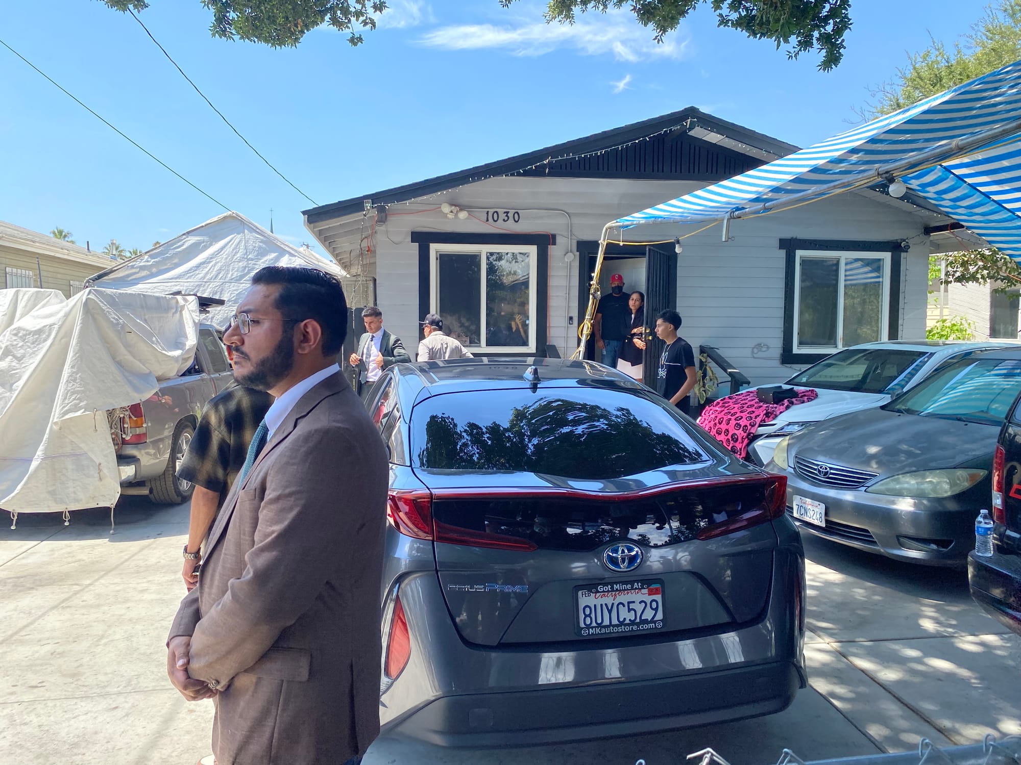 Four attorneys gathered on Aug. 22 outside the San Bernardino house of Francisco Longoria, demanding an investigation into the Aug. 16 shooting of Longoria and his two sons by masked men from the federal government. Three bullets entered Longoria's truck, but nobody was injured.